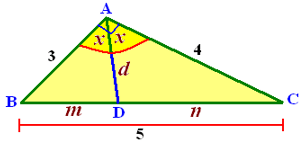 Segitiga ABC siku – siku di A dengan panjang AB = 3 cm dan AC = 4 cm. Dari titik sudut A ditarik garis bagi AD. Maka panjang AD adalah....