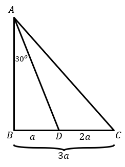 Segitiga ABC siku-siku di B. Titik D terletak pada sisi BC sedemikian hingga CD = 2BD. Jika ∠DAB = 30° maka besar sudut CAD adalah ….