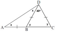 Segitiga pada gambar di bawah ini memiliki sisi-sisi dengan panjang AB = BD = CD, dan . Besar adalah ….