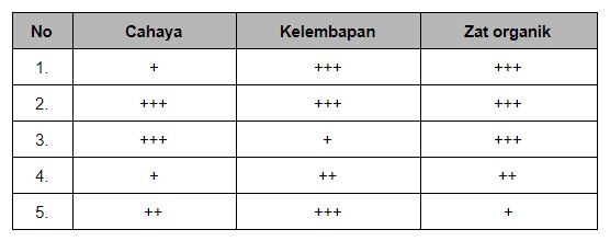 Berdasarkan tabel tersebut, maka lingkungan yang paling cocok untuk tumbuhnya jamur adalah ....