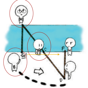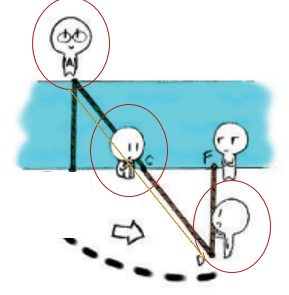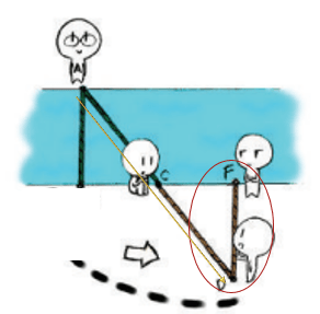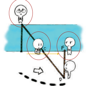 sungai yaitu titik A. Satu peserta lain berdiri di titik C.
