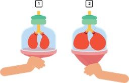Gambar I menggambarkan diafragma kontraksi, volume rongga dada mengecil, dan tekanan udara di dalam paru-paru membesar.