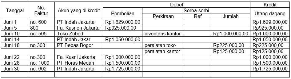 Catatlah transaksi tersebut ke dalam jurnal pembelian!