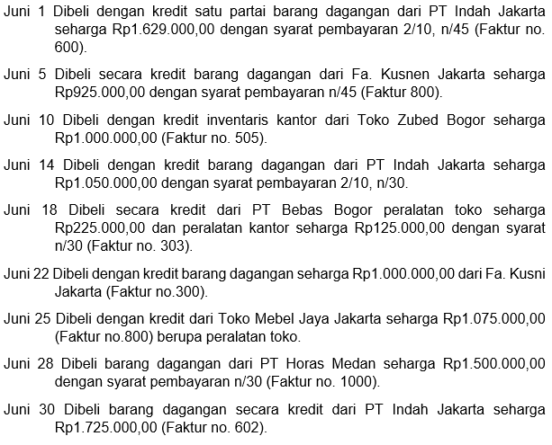 Selama bulan Juni 2005 PD MERPATI Bandung telah melakukan transaksi sebagai berikut.