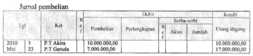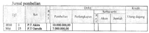 Transaksi di atas, dicatat dalam jurnal pembelian secara benar adalah ....