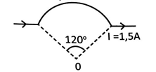 Selembar kawat berarus listrik dilengkungkan seperti pada gambar. Jika jari – jari kelengkungan sebesar 20 cm, maka besarnya induksi magnetik di pusat lengkungan adalah .…