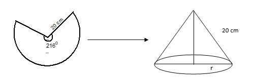 Seng berbentuk juring lingkaran akan dibentuk menjadi sebuah kerucut, maka volume kerucut yang terbentuk adalah …. (dalam )