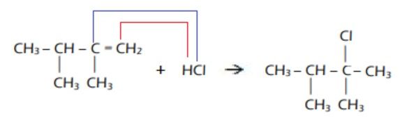 Senyawa hidrokarbon dapat mengalami beberapa reaksi, diantara reaksi substitusi, eliminasi, dan adisi. Senyawa dengan struktur: