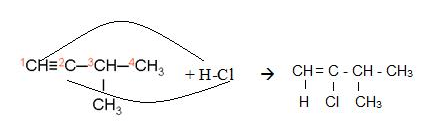 hasil reaksi: 3-metil-2-kloro-1-butena