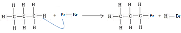 Senyawa hidrokarbon dengan rumus molekul direaksikan dengan gas bromin pada suhu tertentu sehingga menghasilkan produk samping yang bersifat asam. Produk utama dari reaksi tersebut adalah ….