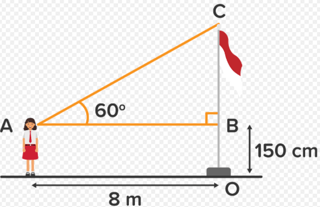 Seorang anak memandang bendera dengan sudut elevasi . Jika antara tiang bendera dengan anak tersebut dan tinggi anak tersebut . Maka tinggi bendera adalah ...
