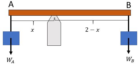 Seorang pedagang memikul beban di bahunya dengan batang homogen AB yang panjangnya 2 m. Ujung A diberi beban bermassa 20 kg dan diujung B diberi beban 30 kg. Jika batang AB berada dalam keadaan setimbang, maka bahu pedagang tersebut harus diletakkan ….