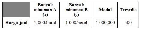 1000 jenis minuman A dan 500 jenis minuman B
