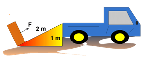 Seorang pekerja hendak menaikkan sebuah lemari besi ke bak belakang truk dengan menggunakan bidang miring seperti gambar.
