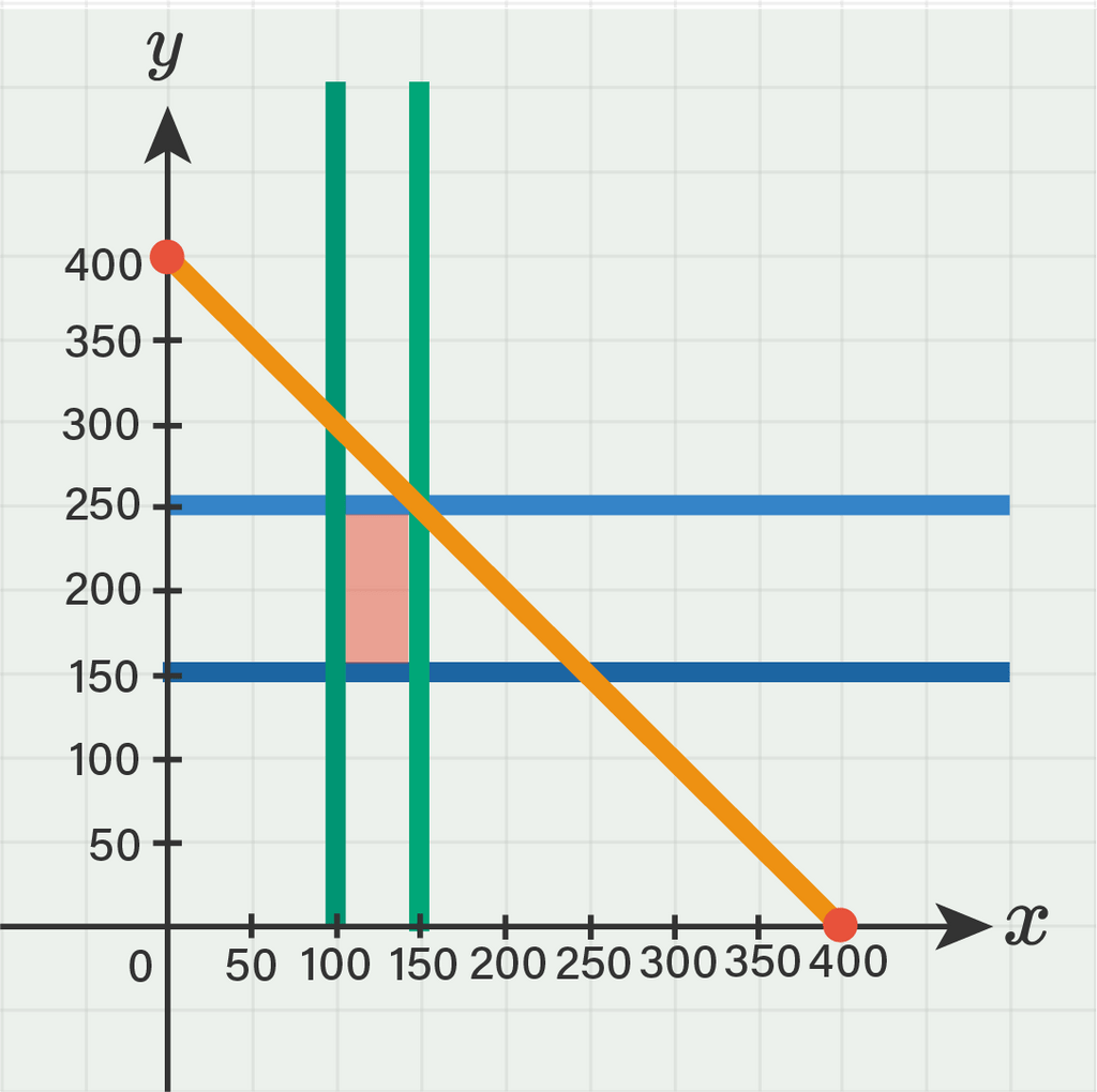 Seorang pemilik toko ingin mengisi tokonya dengan sepatu laki-laki paling sedikit 100 pasang dan sepatu wanita 150 pasang. Toko tersebut hanya dapat menampung 400 pasang sepatu. Keuntungan setiap pasang sepatu laki-laki adalah Rp15.000,00 dan keuntungan sepatu wanita adalah Rp10.000,00. Jika banyak sepatu laki-laki tidak boleh melebihi 150 pasang dan sepatu wanita tidak boleh melebihi 250 pasang, maka keuntungan terbesar yang diperoleh oleh pemilik toko adalah....