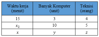 Seorang pemilik toko komputer memperkirakan bahwa untuk merakit unit komputer dibutuhkan orang teknisi dengan waktu menit. Berapa menit waktu yang dibutuhkan untuk merakit unit komputer dengan orang teknisi?
