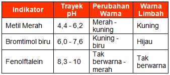 Seorang peneliti mengambil sampel limbah untuk diuji pH-nya menggunakan indikator berikut: