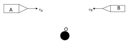 Seorang pengamat di stasiun ruang angkasa mengamati bahwa terdapat dua buah pesawat yang bergerak dalam arah berlawanan mendekati dirinya. Jika kecepatan pesawat pertama menurut pengamat tersebut adalah vA dan kecepatan pesawat kedua adalah vB, kecepatan pesawat B menurut pengamat A adalah ….