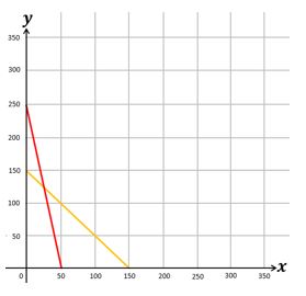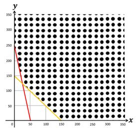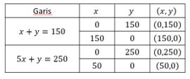 Seorang penjual buah menjual minimal 150 buah. Penjual tersebut mendapat keuntungan sebesar Rp5.000 dari satu buah mangga dan Rp1.000 dari satu buah apel. Dia ingin mendapatkan keuntungan minimal Rp250.000 dari penjualan tersebut. Jika modal satu buah mangga adalah Rp10.000 per buah dan buah apel Rp5.000 per buah, maka modal terkecil yang mungkin adalah ....