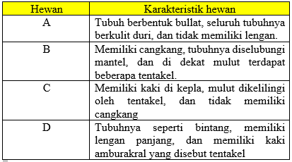 Seorang peserta didik mengamati beberapa jenis hewan. Peserta didik tersebut mendata karakteristik hewan sebagai berikut.