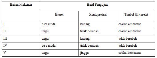 Berdasarkan data percobaan, bahan makanan II ketika diuji dengan biuret menghasilkan warna ungu artinya memiliki ikatan peptida, diuji dengan timbal (II) asetat memberikan warna coklat kehitaman artinya mengandung belerang, dan diuji dengan uji xantoproteat tidak menunjukkan perubahan warna yang artinya tidak mengandung cincin benzena.