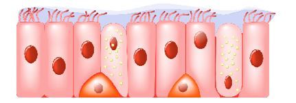 Seorang siswa mengadakan pengamatan terhadap jaringan epitelium awetan yang berasal dari trakea. Berdasarkan hasil pengamatannya, siswa tersebut mendapati adanya bagian jaringan epitelium seperti di bawah ini: