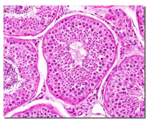 Seorang siswa sedang mengamati suatu jaringan pada salah satu organ penyusun sistem reproduksi pria dengan mikroskop cahaya. Jaringan yang ia amati sebagai berikut.