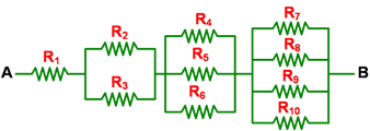 Sepuluh hambatan listrik disusun seperti pada gambar berikut!