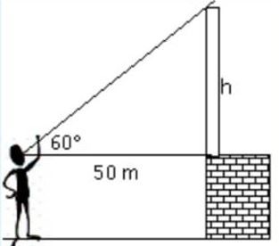 Seseorang sedang melihat ujung tiang listrik yang berada di atas sebuah tembok dengan sudut elevasi . Jika jarak orang tersebut dengan tiang seperti pada gambar di bawah ini, maka tinggi tiang listrik dari atas tembok adalah ....