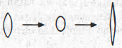 Seseorang sedang menuggu kedatangan kereta api yang akan ditumpanginya. Dia melihat kereta api yang akan ditumpanginya sudah tampak meskipun jaraknya masih jauh. Selanjutnya, dia melihat jam tangannya untuk mengetahui jam berapa kereta api itu tiba di stasiun. Dia juga mengamati jam stasiun yang terletak sejauh 5 meter dari tempat duduknya untuk mengecek kebenaran jam tangannya. Berdasarkan peristiwa di atas, gambar mana yang menunjukkan perubahan bentuk lensa mata orang tersebut?