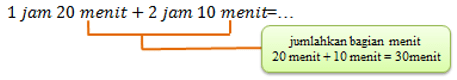 Setiap hari Dino berolahraga dua kali dalam sehari. Di pagi hari Dino akan melakukan lari selama 1 jam 20 menit, kemudian di sore hari Dino akan berenang selama 2 jam 10 menit. Lama Dino berolahraga dalam satu hari adalah …