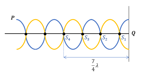 Seutas tali PQ sepanjang 2 meter digetarkan harmonis di ujung P dan ujung Q bebas bergerak. Jika panjang gelombang tali adalah 28 cm, tentukan jarak simpul ke-4 dihitung dari titik asal getaran!