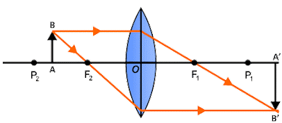 Sifat bayangan yang terbentuk oleh lensa cembung dari sebuah benda yang terletak diantara titik fokus dan titik pusat kelengkungan adalah...