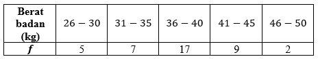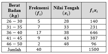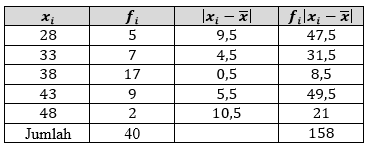 Simpangan rata-rata data pada tabel berikut adalah ....