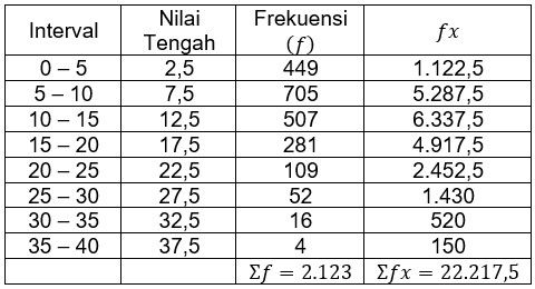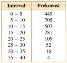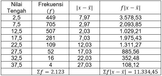 Simpangan rata-rata (MD) dari data pada tabel distribusi pembuat histogram berikut adalah ...