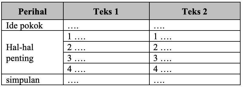 Simpulkan kedua teks tersebut dengan tabel berikut!