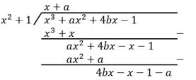 Sisa pembagian p(x) = x3 + ax2 + 4bx – 1 oleh x2 + 1 adalah –5a + 4b. Jika p(x) dibagi x + 1 bersisa –a – 2, maka 8ab = ....