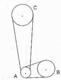 Sistem roda berjari-jari RA = 2 cm ; RB = 4 cm dan RC = 10 cm dihubungkan seperti gambar. Roda B diputar 60 putaran permenit, maka laju linier roda C adalah....