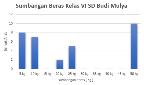 Sajikan sumbangan beras kelas VI SD Budi Mulya dalam bentuk diagram batang!