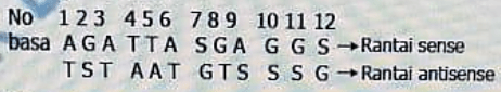 PROSES KE-3: Mutasi transversi pada basa nomor 2, 5, dan 8 rantai sense DNA dari proses ke-2