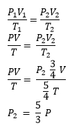 Suatu gas ideal mula-mula menempati ruangan yang volumenya adalah V, tekanan P, dan suhu T. Apabila suhu gas menjadi 5/4 T dan volumenya menjadi V, maka tekanannya sekarang menjadi ….