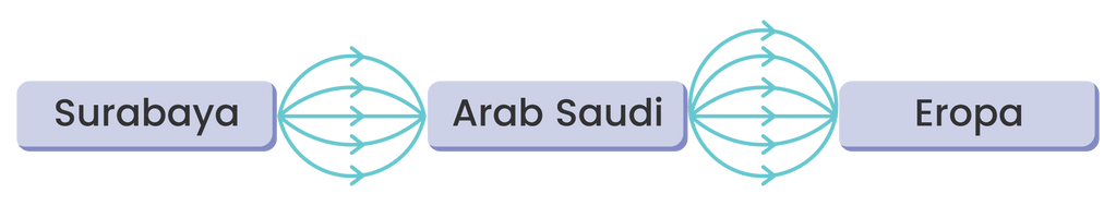 Suatu keluarga yang tinggal di Surabaya ingin liburan ke Eropa via Arab Saudi. Jika rute dari Surabaya ke Arab Saudi sebanyak 5 rute penerbangan, sedangkan Arab Saudi ke Eropa ada 6 rute, maka banyaknya semua pilihan rute penerbangan dari Surabaya ke Eropa pergi pulang dengan tidak boleh melalui rute yang sama adalah ....
