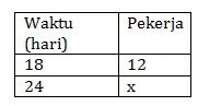 Suatu pekerjaan dapat diselesaikan oleh 12 orang dalam 18 hari. Jika pekerjaan itu akan diselesaikan dalam waktu 24 hari, maka banyak pekerja adalah....