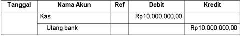 Suatu perusahaan jasa mendapat pinjaman dari bank sebesar Rp10.000.000,00. Transaksi tersebut akan memengaruhi akun kas dan dicatat pada sisi ....