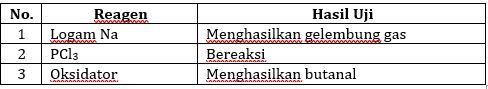 Suatu senyawa organik dianalisis dengan menggunakan berbagai reagen, dengan hasil sebagai berikut: