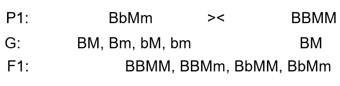 Suatu tanaman berbuah besar-manis heterozigot disilangkan dengan tanaman sejenis, tetapi belum diketahui genotipenya. Persilangan tersebut menghasilkan keturunan yang semuanya berbuah besar-manis. Diketahui sifat buah besar dominan terhadap buah kecil, sedangkan buah manis dominan terhadap buah asam. Kemungkinan genotipe induknya adalah