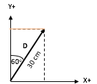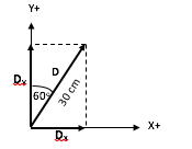 Suatu vektor D memiliki besar 30 cm dan membentuk sudut 60o terhadap sumbu y+ seperti yang terlihat pada gambar di bawah ini.