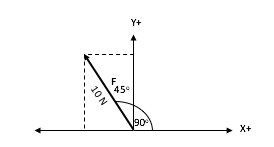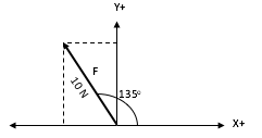 Suatu vektor F memiliki besar 10 N dan membentuk sudut 135o terhadap sumbu x+ seperti yang terlihat pada gambar di bawah ini.