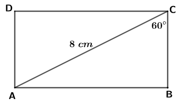 Sudut yang dibentuk oleh diagonal sebuah persegi panjang dan sisi terpendeknya adalah . Tentukan luas persegi panjang tersebut jika panjang diagonalnya !