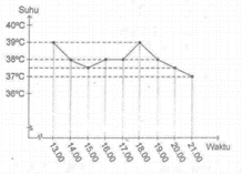 Suhu badan seorang pasien dari pukul 13.00 sampai pukul 21.00 dinyatakan dalam sebuah diagram berikut. perkiraan suhu badan pasien tersebut pada pukul 20.00 adalah...